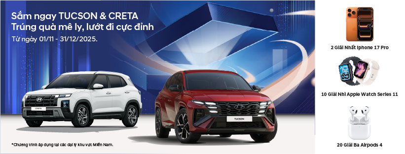 1. Tên chương trình khuyến mại: CHƯƠNG TRÌNH BỐC THĂM TRÚNG THƯỞNG “SẮM NGAY TUCSON VÀ CRETA – TRÚNG QUÀ MÊ LY, LƯỚT ĐI CỰC ĐỈNH”